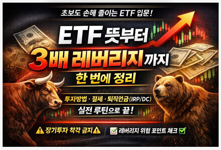바로 ETF! 그리고 유튜브나 커뮤니티에서 “단기간에 크게 벌었다”는 후기와 함께 자주 보이는 3배 레버리지 ETF까지… 🧨